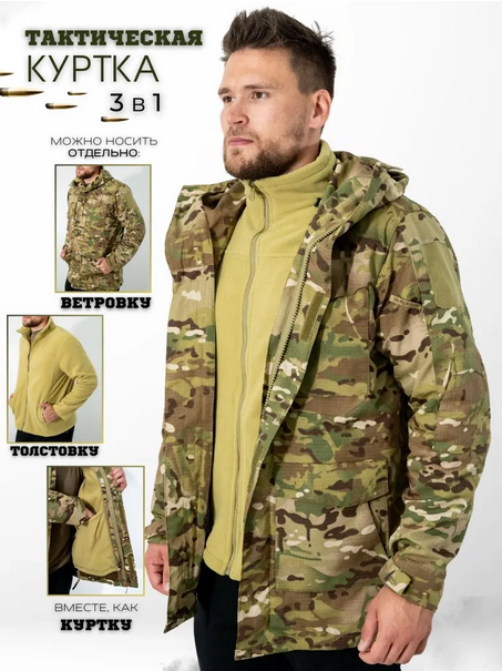Куртка тактическая 3 в 1, цвет мультикам - интернет магазин Полигон