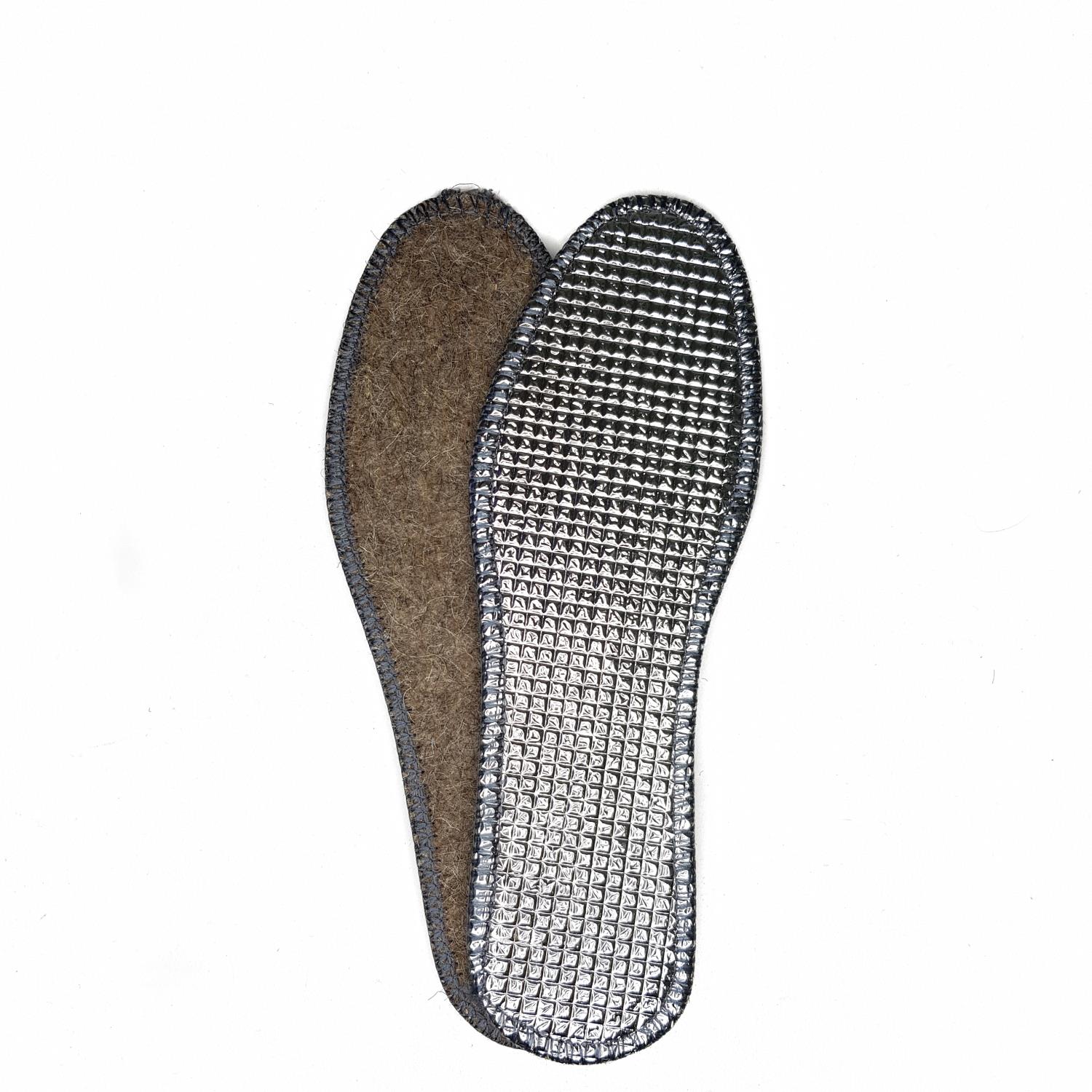 Тёплые зимние стельки из войлока, представлены в ассортименте. Размер универсальный от 35 до 46. Стельки из трех слоев - войлочного, ЭВА и пластик. Слой мягкого натурального войлока предохраняет стопы от холода, сохраняет благоприятную температуру в полости обуви, создается теплоизолирующий эффект хорошо сохраняющий тепло. Нижние слой из ЭВА снимают ударные нагрузки на стопу, за счет чего обеспечивается комфорт во время передвижения. Термостельки сохраняют тепло ног и здоровье ступней. Рекомендованы для любой осенне-зимней обуви. Возможность использовать, как мужчинам, так и женщинам.