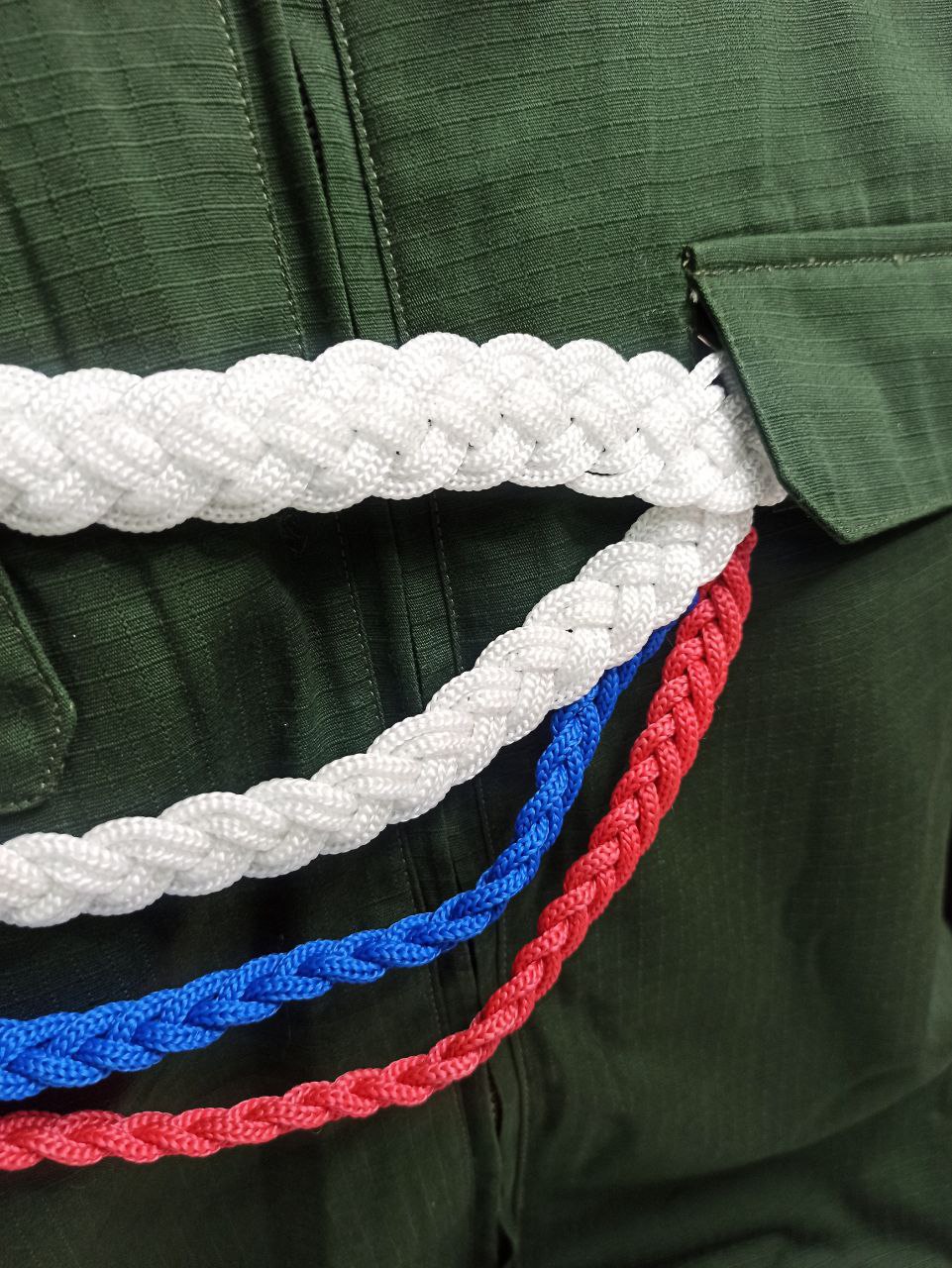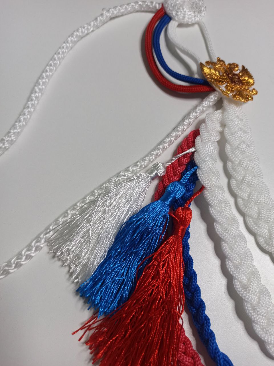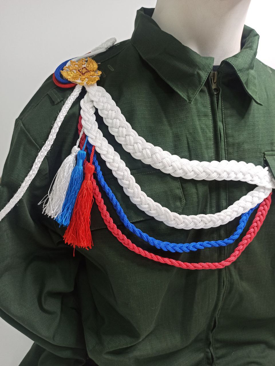 Аксельбант ДМБ цветной "кисти", белый, синий, красный - интернет магазин Полигон