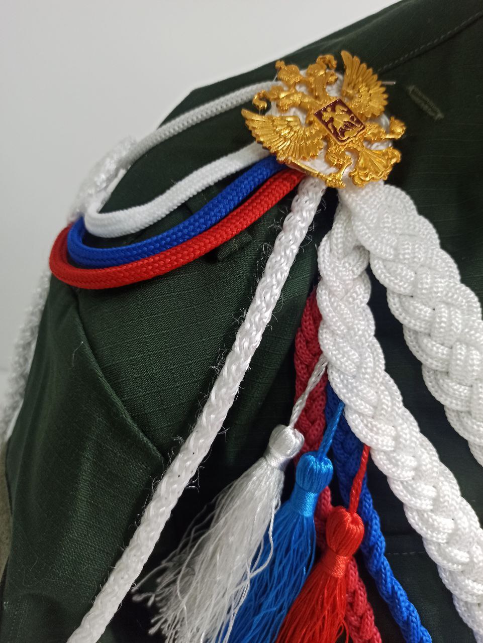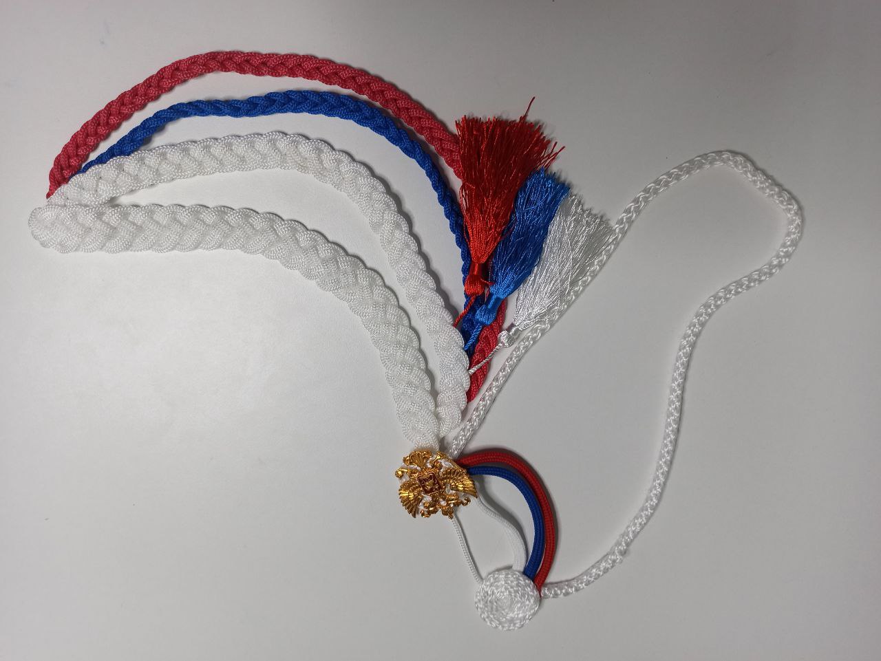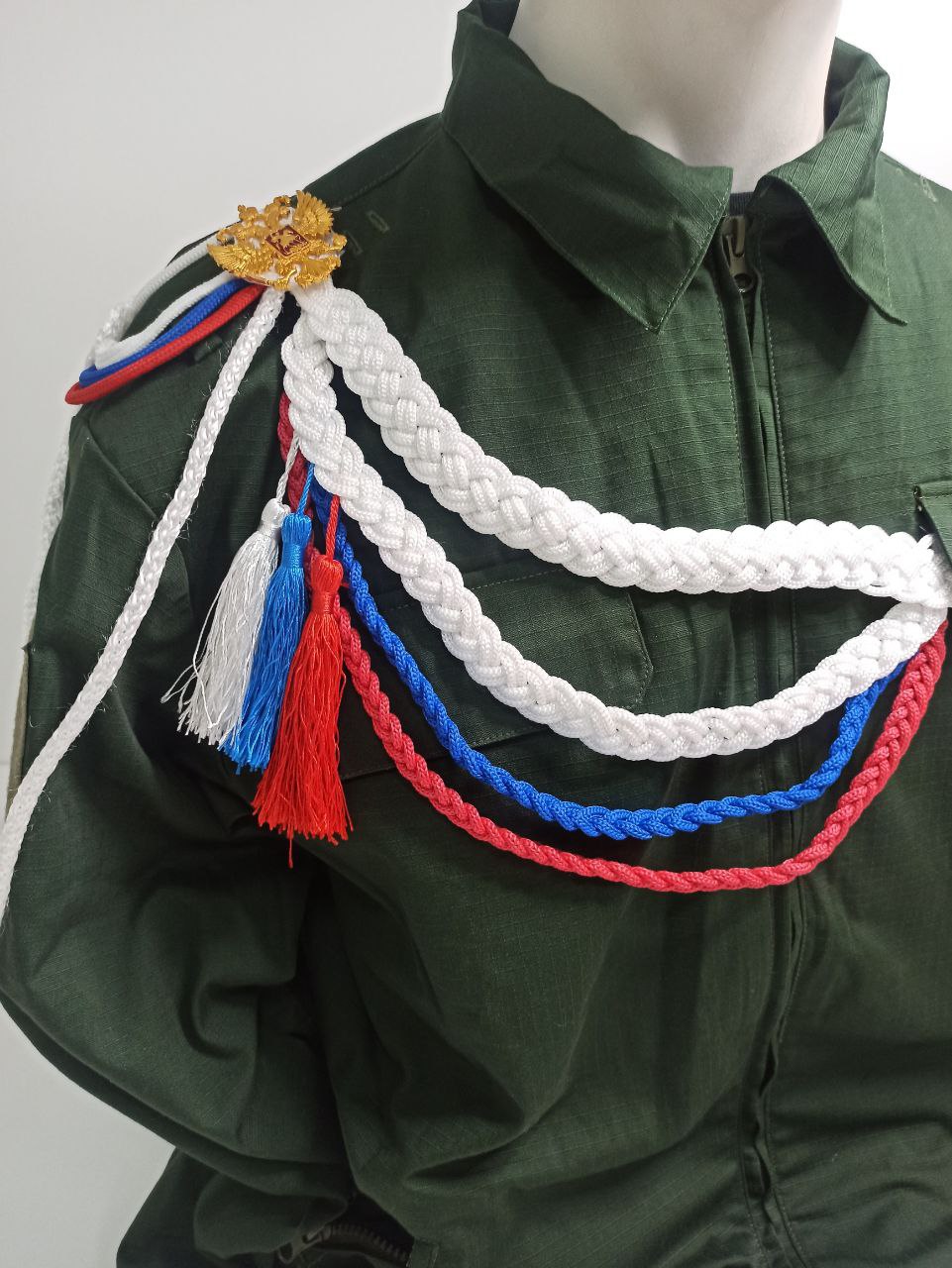 Аксельбант ДМБ цветной "кисти", белый, синий, красный - интернет магазин Полигон