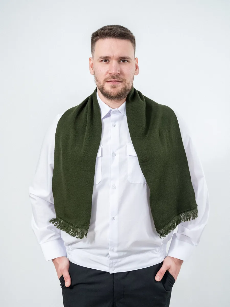 Шарф, оливковый, пан, шерсть - интернет магазин Полигон