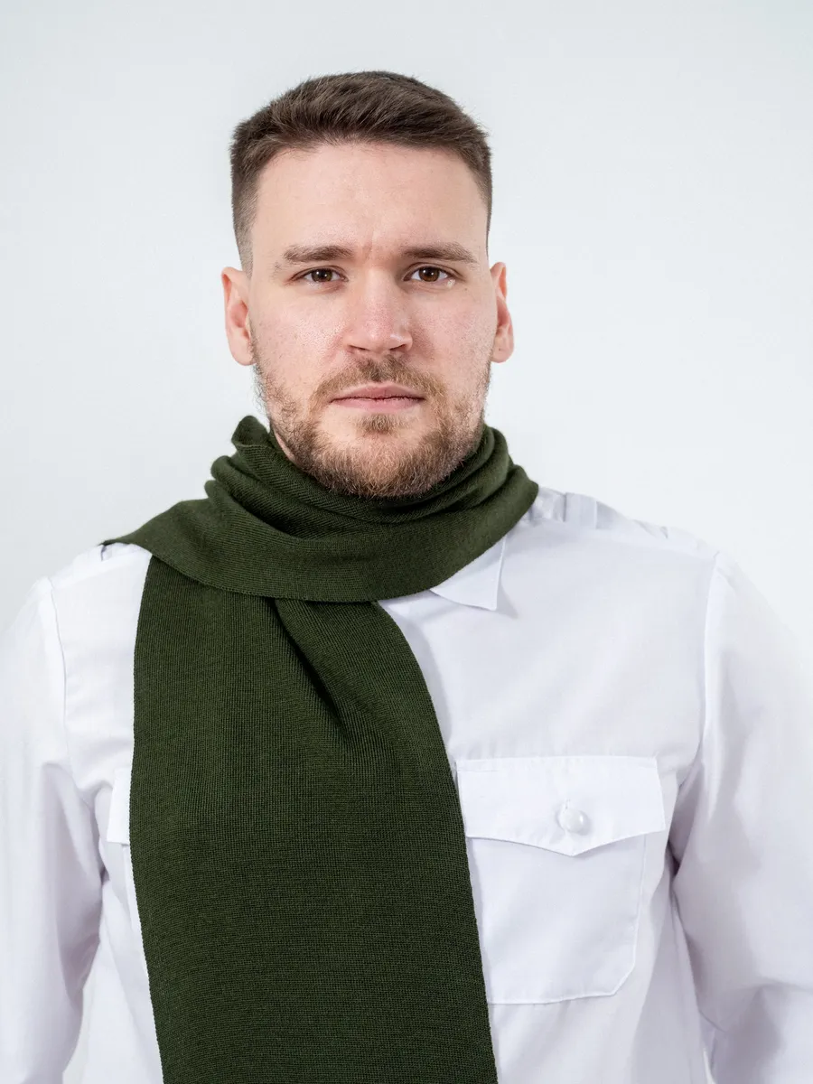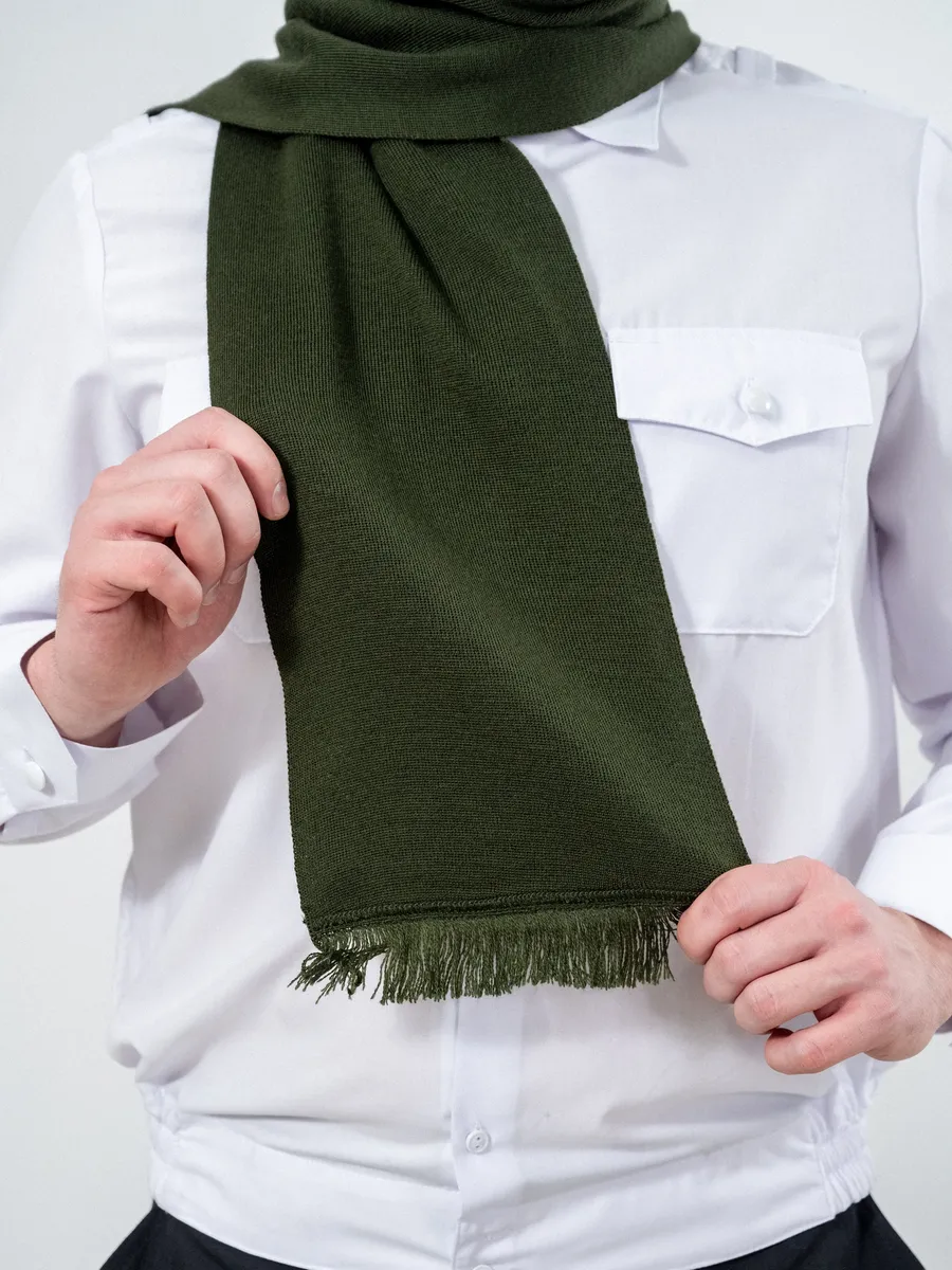 Шарф кашне мужской и женский для военнослужащих Армейский Уставной Армия России. Кашне используют при ношении форменного обмундирования, в холодное время года. Гладкий шарф с короткой бахромой по краям и эластичной вязкой.120*20 размеры шарфа. Платки форменные для Полиции МВД, ВМФ, МЧС, СВЧ.