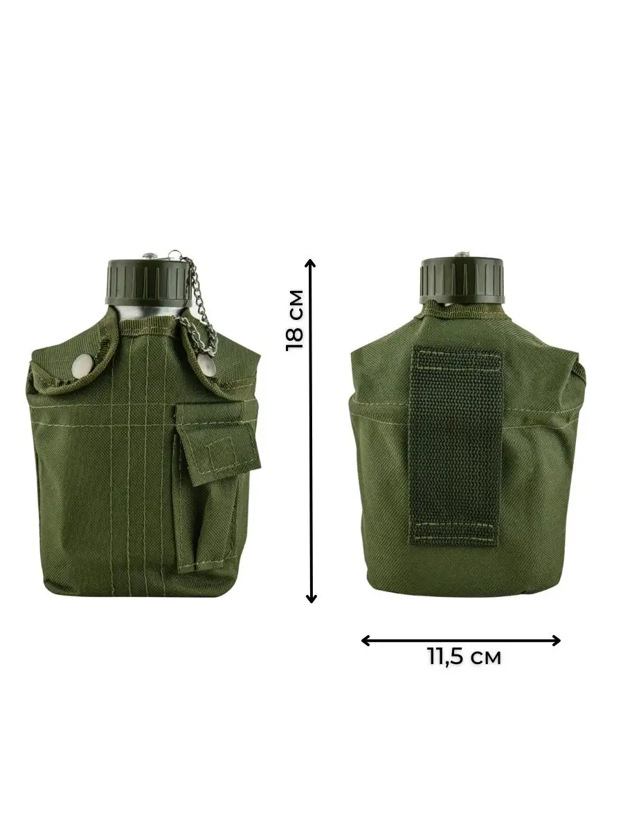 Армейская фляга котелок в чехле. Вес 400гр, объем фляги 950 мл, объем котелка 600 мл, чехол оливковый. На передней стороне подсумка расположена пара кнопок и текстильный карман на липучке. Тактический чехол имеет шлевку для крепления на тактическом ремне, рюкзаке. Нужный набор для полевых условий. Создан с расчетом на длительное пребывание бойца на полигоне или в районе боевых действий СВО. Отлично подойдет туристам, рыбакам, охотникам, сотрудникам охраны и всем, кто собирается на природу. Походный набор состоит из фляги, чехла и кружки-котелка с удобной ручкой. Создан для нужд армии. В кружке-котелке прекрасно можно приготовить еду, а во фляге напитки долго сохранят температуру. Подходит как для хранения горячих жидкостей, так и для холодных. Крышечка фляги снабжена цепочкой и никогда не потеряется. Легкий и прочный алюминиевый сплав не дает посторонних запахов, отлично держит температуру и позволяет быстро отмыть чашку-котелок даже в холодной воде без чистящих средств. Материал чехла – нейлон. Фляжка и армейский котелок отлично подойдут на подарок другу, сослуживцу, брату, дембелю.